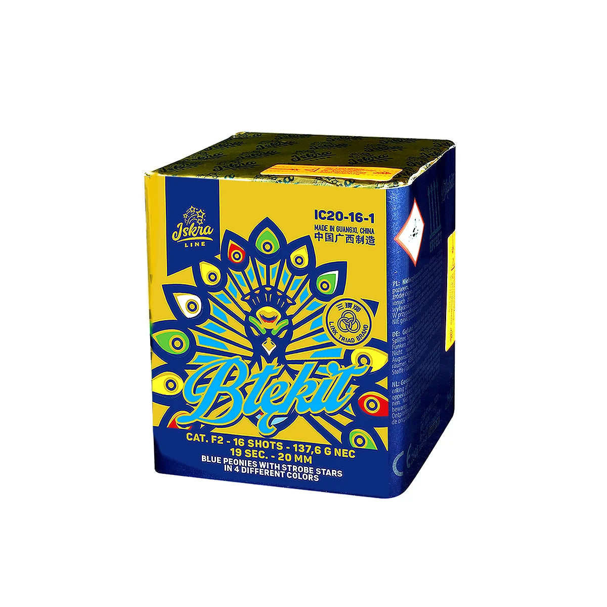 Kompakte Batterie mit richtig bunter Show: schnelle Aufstiege, oben knallen dir große, farbenfrohe Buketts entgegen – Rot, Blau, Grün, Gold, je nach Salve anders kombiniert. Viel Farbe, viel Bild, wenig Leerlauf.