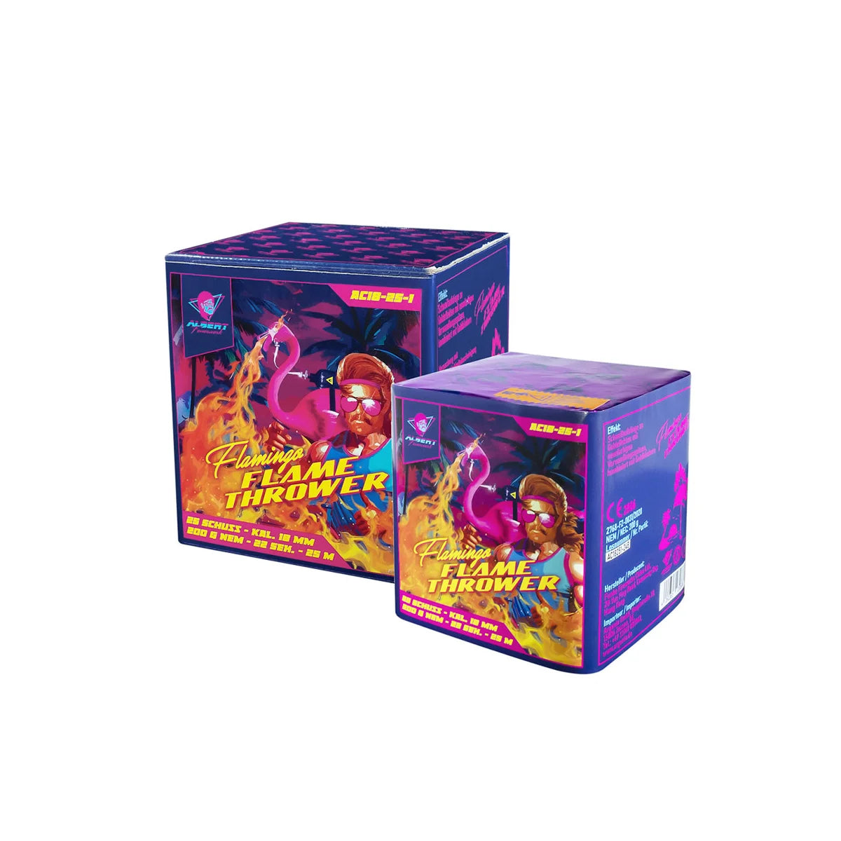 Goldene Schweife steigen in den Himmel, zerplatzen zu funkelndem Goldregen mit auffälligen Neonspitzen in Orange, Pink, Aqua oder Lemon – dazwischen immer wieder goldene Blinker. Zum Schluss liefert das Finale eine dichte Corolla-Weide mit doppelfarbigen Spitzen und Goldblinkern.
